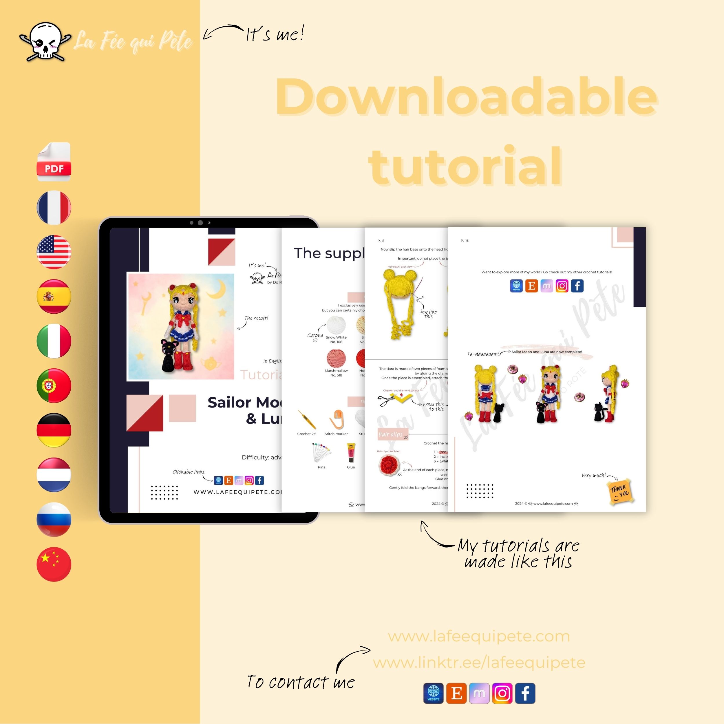 🌙✨ Prêt·e à invoquer la magie de la lune avec ton crochet ? Avec ce tutoriel PDF, tu peux créer ta propre Guerrière de la Lune et son fidèle chat magique. Entre kawaii et badass, ce duo est là pour protéger tes étagères contre les forces du chaos (ou juste contre la poussière). 📏 Taille : environ 23 cm (selon ton fil et ta tension), 🎯 Niveau : avancé – un défi fun si tu maîtrises déjà les bases du crochet, 📄 Format : tutoriel PDF téléchargeable (aucun objet fini n’est envoyé), 🌍 Langues incluses : français, anglais US, espagnol, italien, portugais, allemand, néerlandais, russe, chinois. Inclus dans le tuto : ✔ Explications rang par rang claires et détaillées, ✔ Photos étape par étape pour guider ton crochet, ✔ Astuces pratiques pour des finitions nickel, ✔ Tous les détails des accessoires : bottes, nœud, diadème, queue souple du chat, etc. Matériel nécessaire : Fil de coton (crochet 3) Crochet 2.5 Marqueur de mailles Rembourrage Ciseaux et aiguille à laine Fil de fer + épingles Colle Papier mousse : rose, jaune, rouge 2 yeux kawaii Ø 12 mm 2 yeux kawaii Ø 8 mm Pourquoi tu vas adorer ce tuto : 💫 Parce que tu crées une héroïne lunaire iconique, 💫 Parce que tu ajoutes un chat magique kawaï à ta collection, 💫 Parce que le tuto est qualitatif, clair, fun et multilingue. Important ! ⚠️ Ce produit est un patron PDF et non une poupée finie. ⚠️ Téléchargement instantané disponible après l’achat.